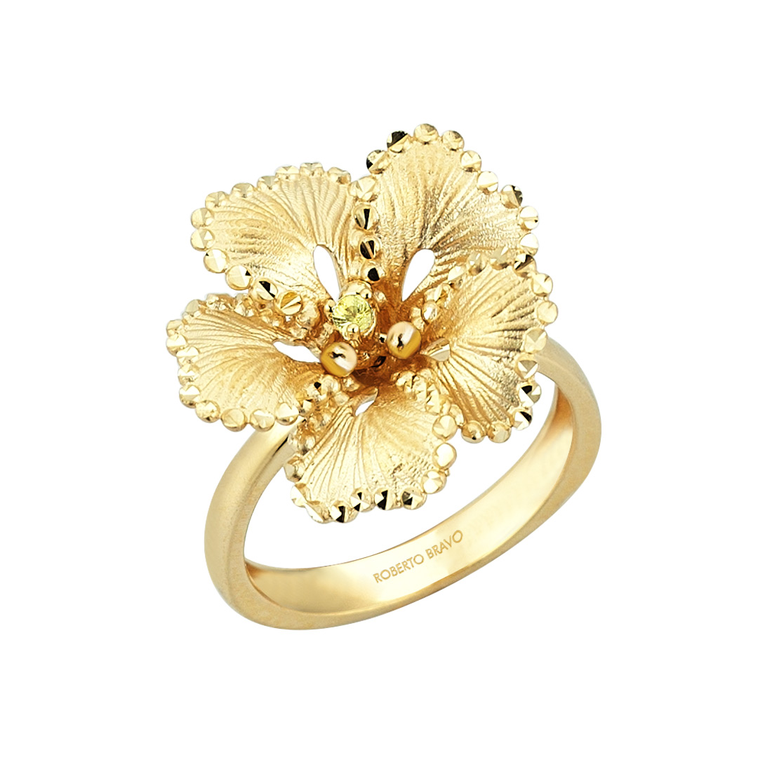 "Soul Dance" от Roberto Bravo — нежные, легкие, супермодные. Тонкие золотые пластины, словно из сокровищ Трои, изогнуты как морские волны и сложены в цветочные лепестки. Украшения из коллекции "Soul Dance" универсальны и их комфортно носить как с повседневной одеждой, так и с коктейльным платьем. Кольца, подвески и серьги с самыми разными застежками выполнены из золота пяти цветов 5 цветов золота (белый, желтый, розовый – цвета золота, достигаемые посредством лигатуры. Черный и шоколадный – цветное родирование), так что вы не уйдете из бутика Roberto Bravo без своего цветка.
